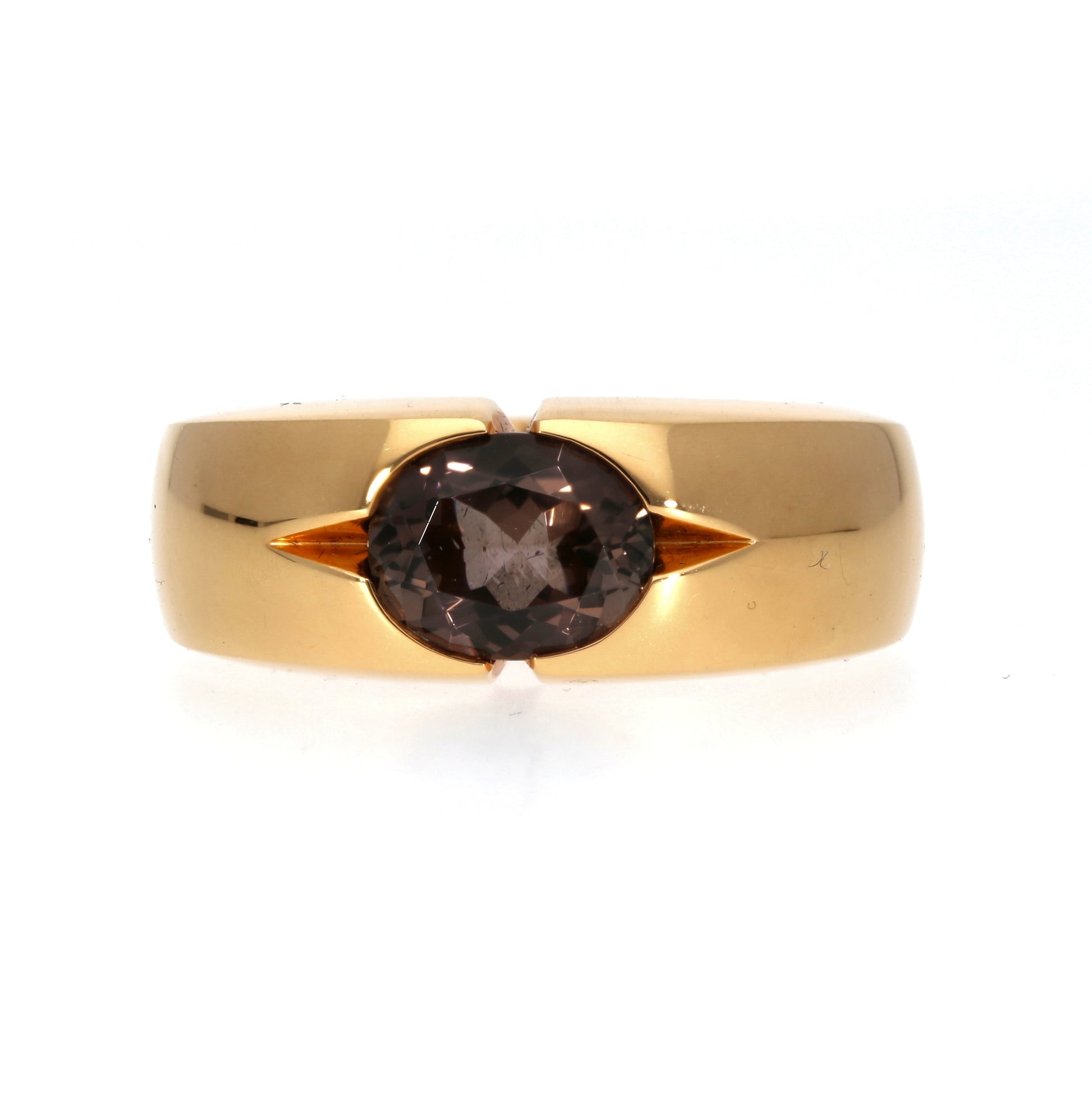 Harmonisches Design, signiert Jochen Pohl, in Gelbgold 18K mit einem oval, facettierten braunen Turmalin von ca. 1,92 ct, Ringgrösse 54, 27,3 g.