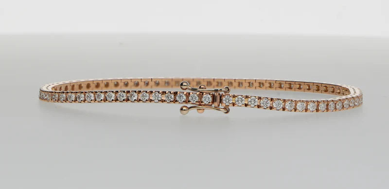 Geschmackvolles Tennis-Armband in Roségold 18K mit Brillanten von zus. ca. 2 ct (G/SI) in Krappenfassung, Länge 18 cm mit doppelter Achtersicherung, 9,7 g, Neuwertiger Zustand.