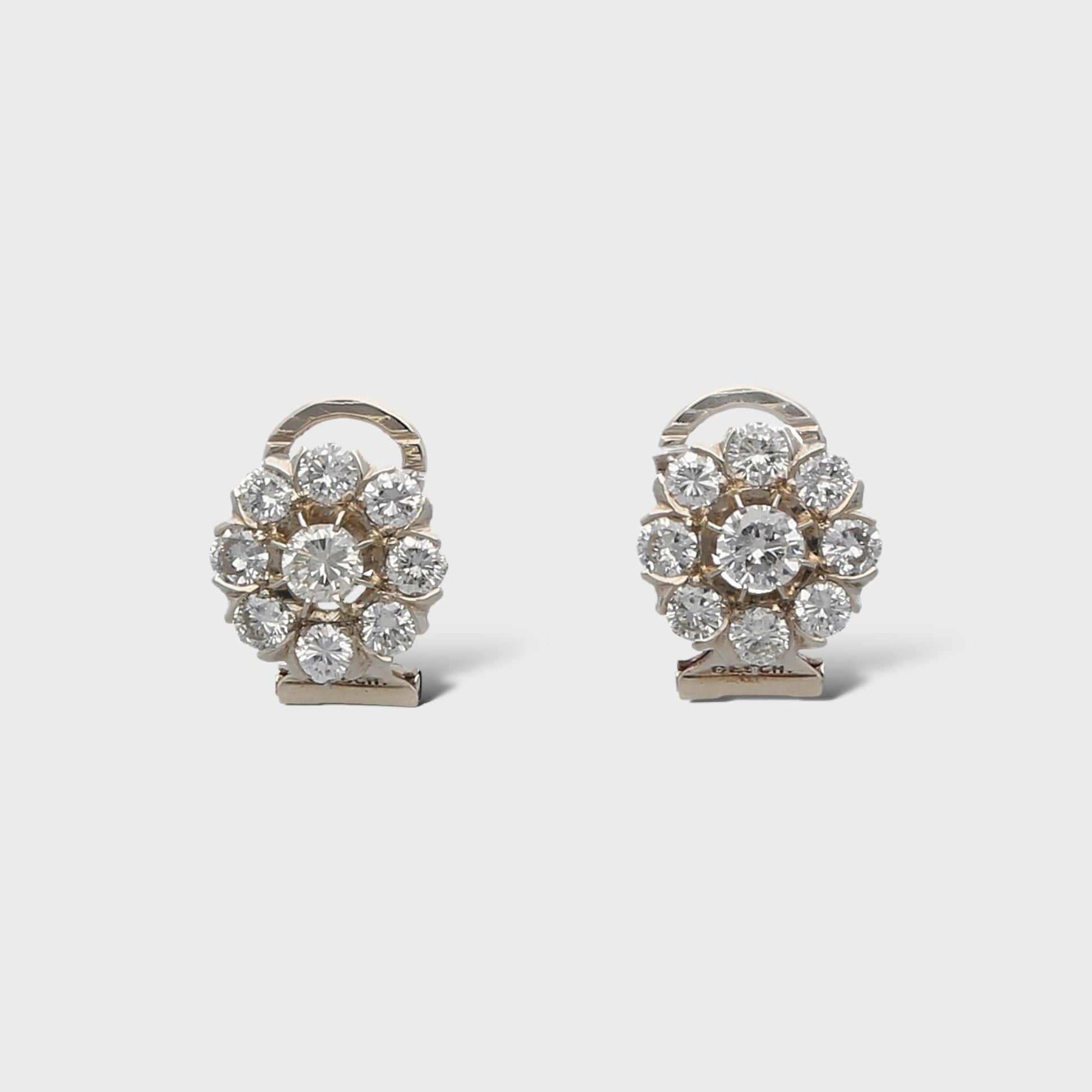 Bezaubernde Ohrclips in Weissgold 14K mit 18 Brillanten von zus. ca. 1,5 ct (G/VS). Durchmesser ca. 12 mm, 4,1 g.